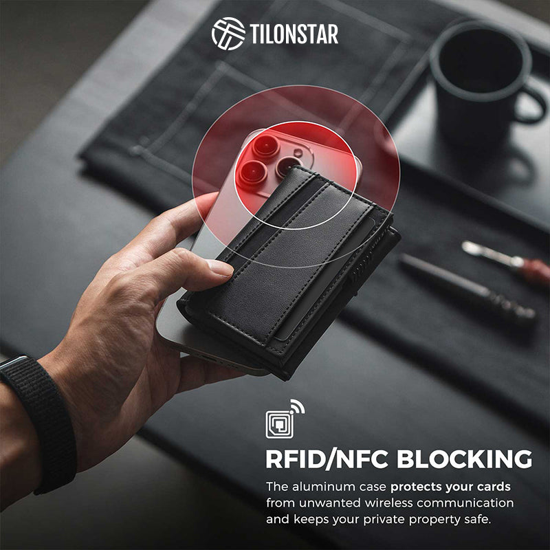 - RFID/NFC Blocking - Advanced technology aluminum case protects your cards from unwanted wireless communication and keeps your private property safe.